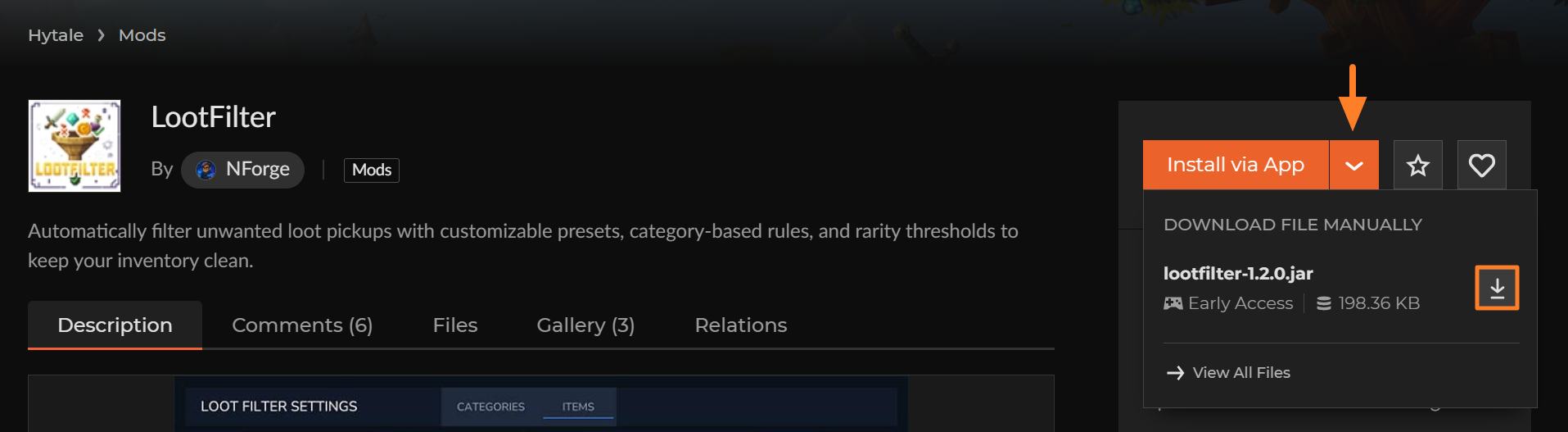 Manually place the downloaded file into the Hytale mod folder on your computer.