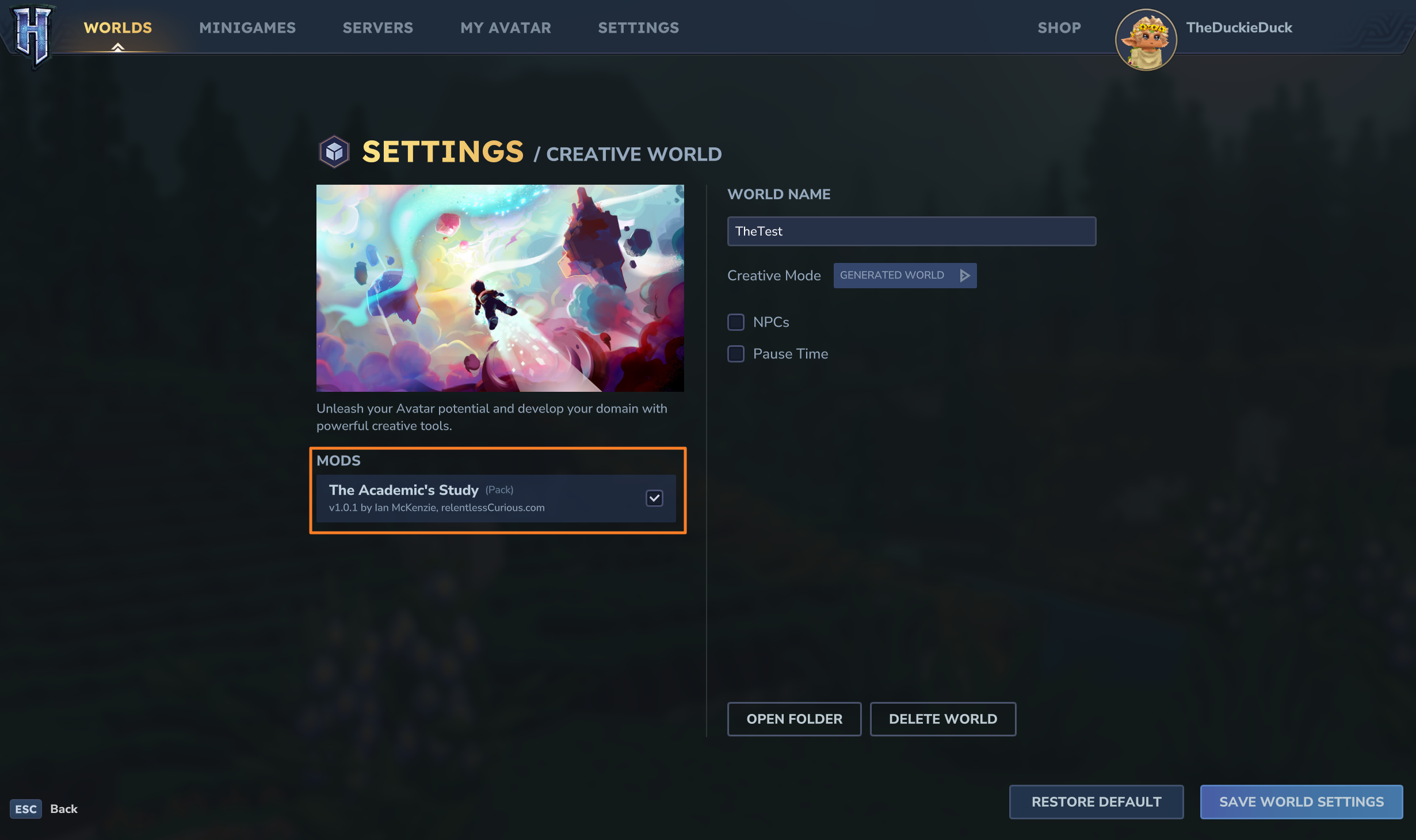 You can then enable the mod on a new world or add it to an existing world using the steps Here